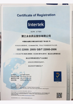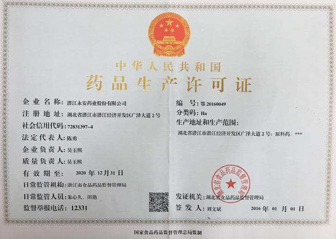 潛江永安藥業(yè)股份有限公司成立于2001年,坐落于江漢平原腹地潛江市國(guó)家高新技術(shù)產(chǎn)業(yè)開發(fā)區(qū),占地500余畝,注冊(cè)資金貳億玖仟肆佰陸拾捌萬貳仟伍佰元整,是一家擁有自主知識(shí)產(chǎn)權(quán)的國(guó)家高新技術(shù)企業(yè)。公司股票于2010年3 月5日在深圳證券交易所掛牌上市(股票代碼為002365)。公司具有雄厚的技術(shù)開發(fā)能力,是湖北省創(chuàng)新型企業(yè)和湖北省知識(shí)產(chǎn)權(quán)建設(shè)示范企業(yè)。公司研發(fā)平臺(tái)分別被認(rèn)定為省級(jí)企業(yè)技術(shù)中心和湖北省功能性食品添加劑工程技術(shù)研究中心。 經(jīng)過多年的發(fā)展,公司形成了以食品及藥品添加劑牛磺